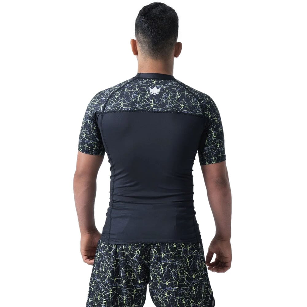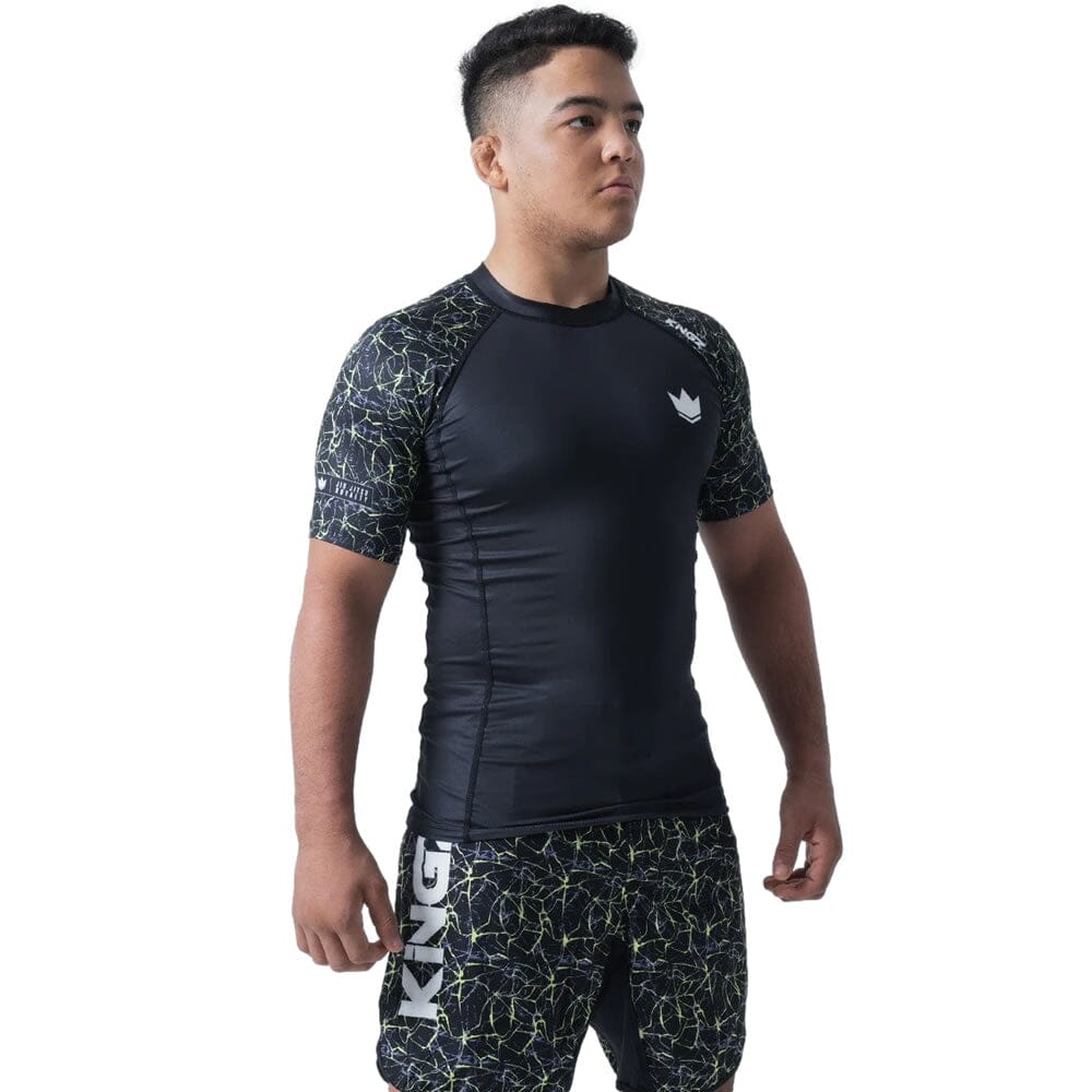 The Kingz Lightning Short Sleeve Rashguard will give you a unique electric style that will stand out on the mat. Its durable polyester/spandex fabric and snug athletic fit provide comfort and mobility for your active lifestyle. Make it a kit with the Lightning Shorts.