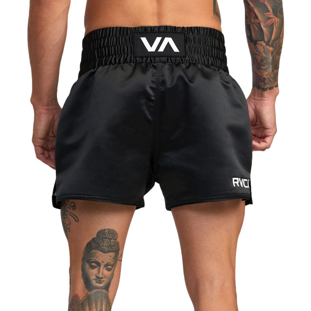 Elevate your workout look in the RVCA Muay Thai Mod Elastic Boxing Shorts. Made from recycled polyester, to reduce, reuse, and repurpose, these 15-inch performance shorts feature an elastic waist, slight scalloped hem with side split and custom va sport collection branding throughout.