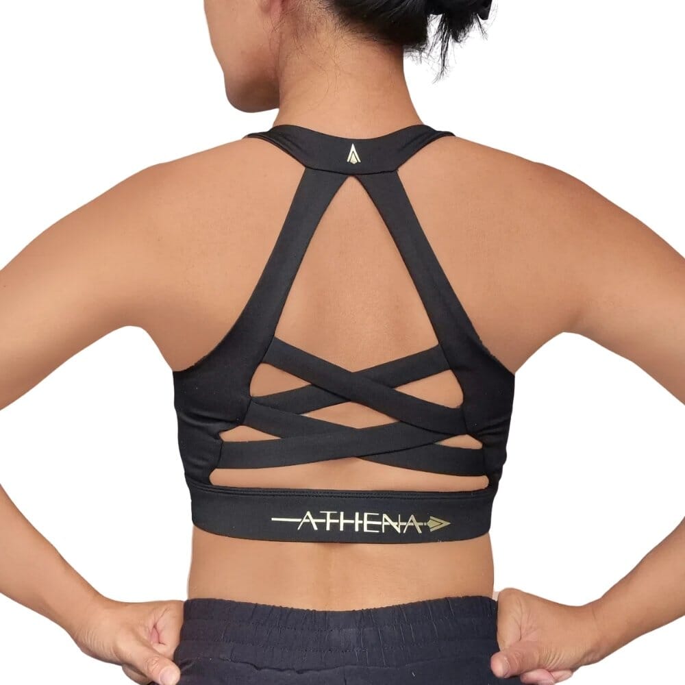 The new upgraded keystone sports bra by Athena Fightwear! Now with built-in breast padding in the front panel for extra support and no more wondering bra pads! The Athena sports bra features a modest neckline and longer torso with a striking back design to balance practical support with a head-turning look. Made for the badass women of boxing, kickboxing, muay thai, MMA and other combat sports and martial arts.