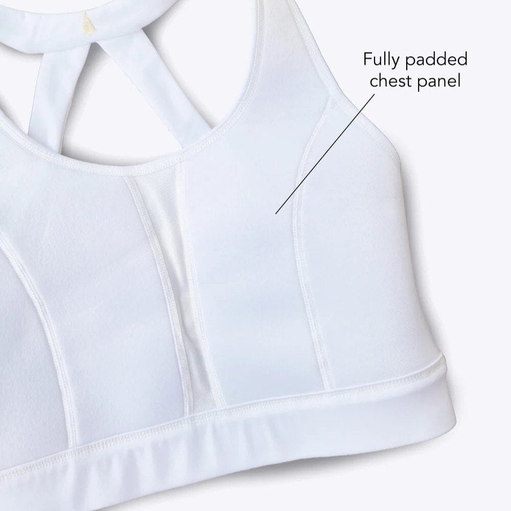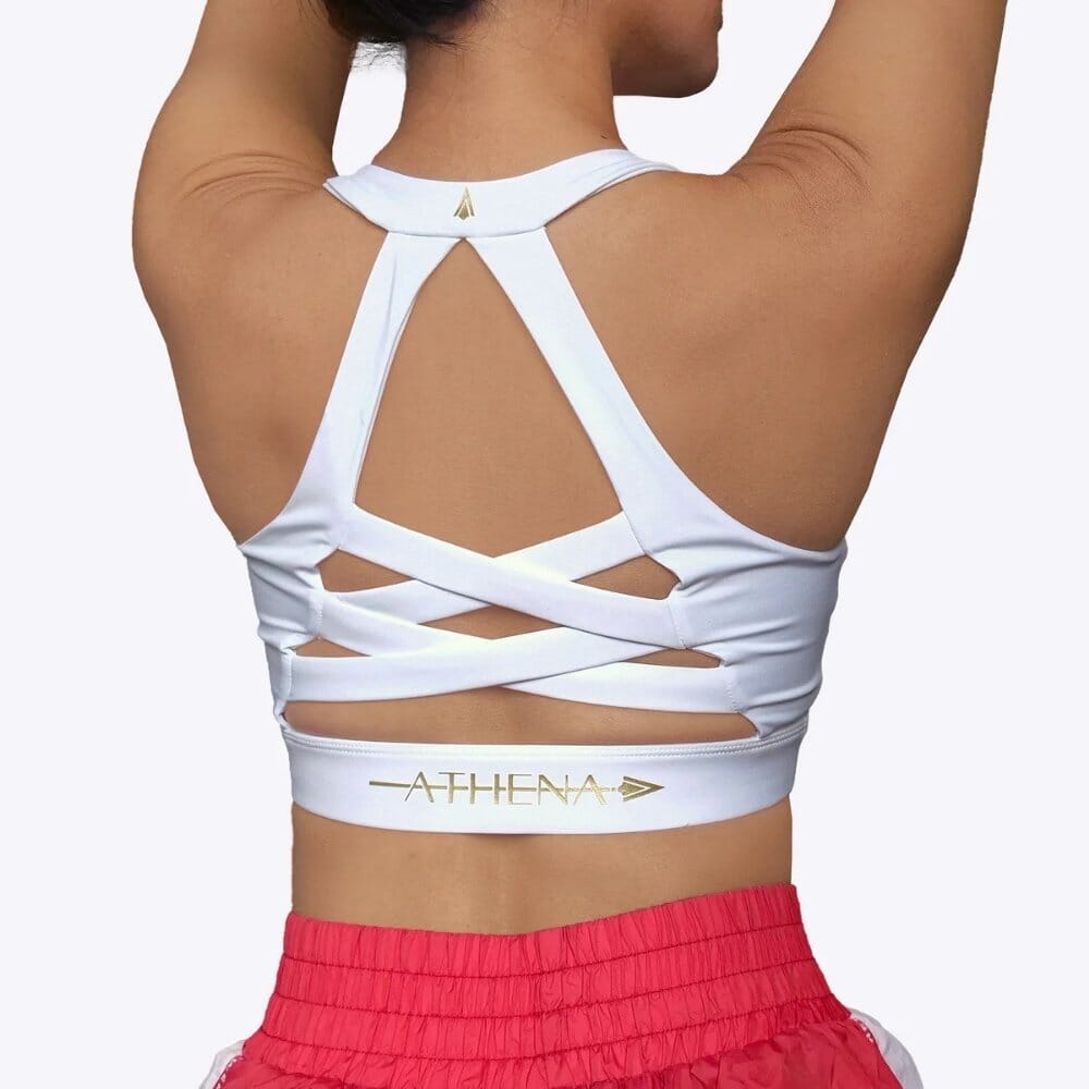 The new upgraded keystone sports bra by Athena Fightwear! Now with built-in breast padding in the front panel for extra support and no more wondering bra pads! The Athena sports bra features a modest neckline and longer torso with a striking back design to balance practical support with a head-turning look. Made for the badass women of boxing, kickboxing, muay thai, MMA and other combat sports and martial arts.