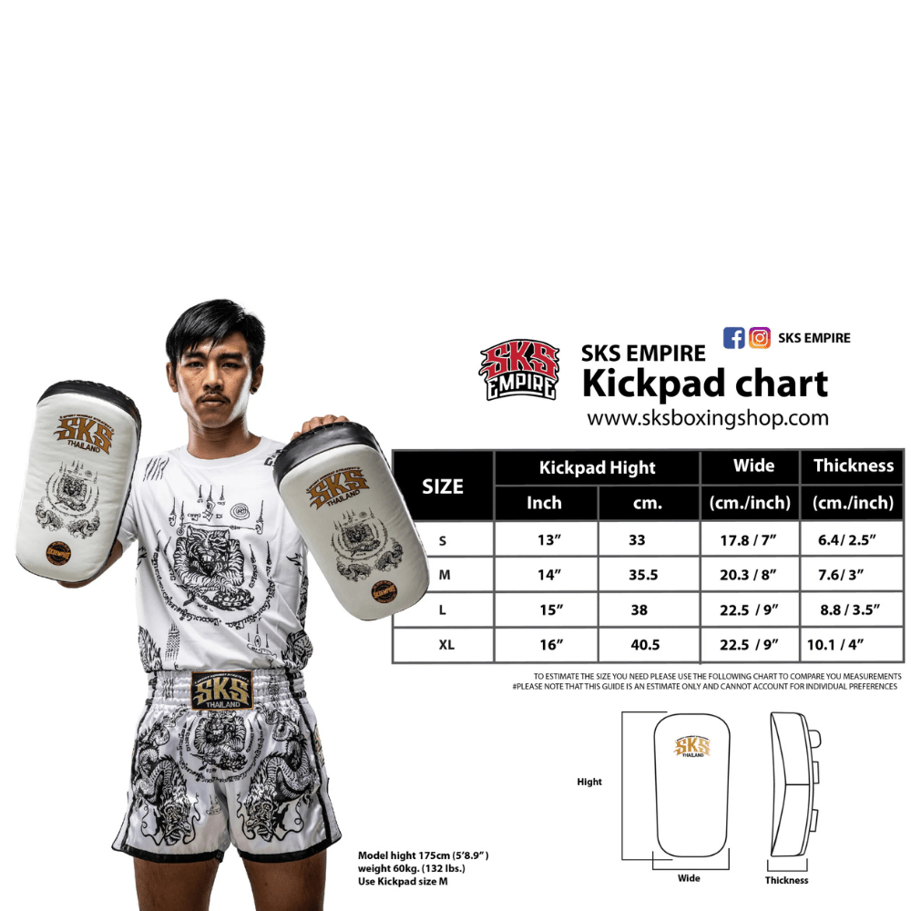 The SKS Classic Thai Pads “pao” are perfect for muay thai and kickboxing training. Handmade in Thailand with high quality Microfiber leather, this pad is strong and flexible, it will give you the performance and resilience required. Ideal for training kicks, knee strikes, and overall striking; it can be used in conjunction with a belly pad and punching mitts. Shock absorption is perfect due to high density padding. You will love them, get yours now!
