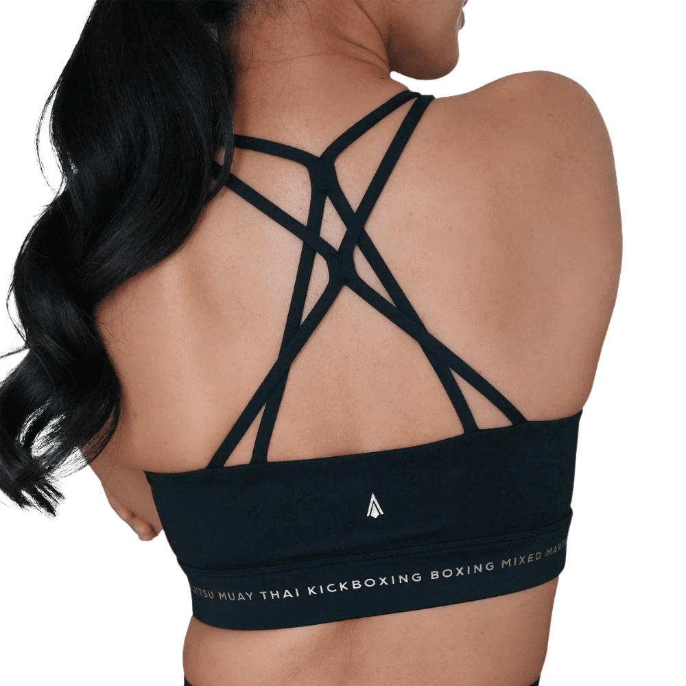 Now with an upgraded crossback design, the Thessalia v2.0 is Athenas version of the classic yoga bra with a little extra length for support and coverage, made for women who fight and perfect for wearing under your Gi. Some familiar martial arts disciplines are imprinted in gold around the waistband - a mark that shows you are part of this fightworld.