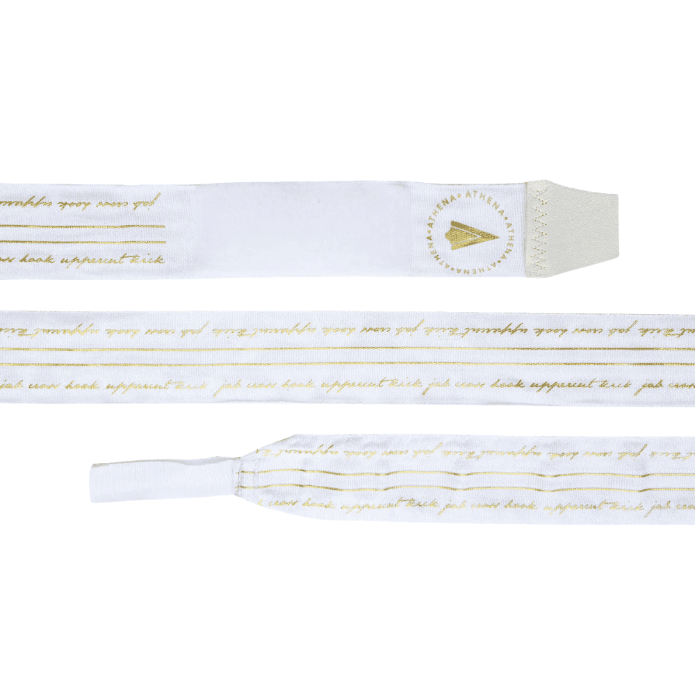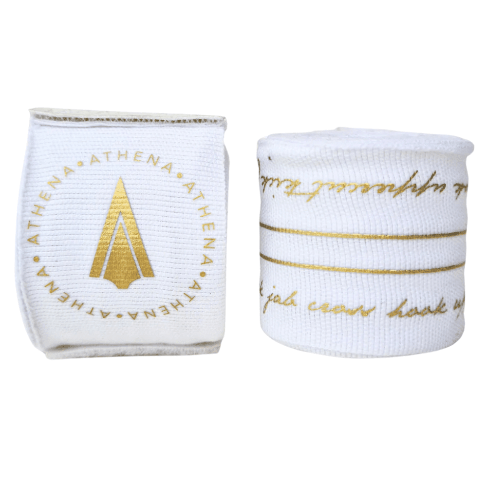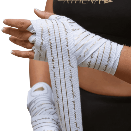A stunning and unique hand wrap made with soft but durable cotton to keep your hands protected during training and sparring. Featuring metallic gold script running down the 180" wrap, the Nerio hand wrap is unlike any other hand wrap you've seen before and brings a new style of femininity to your Boxing/Kickboxing/Muay Thai/MMA training.